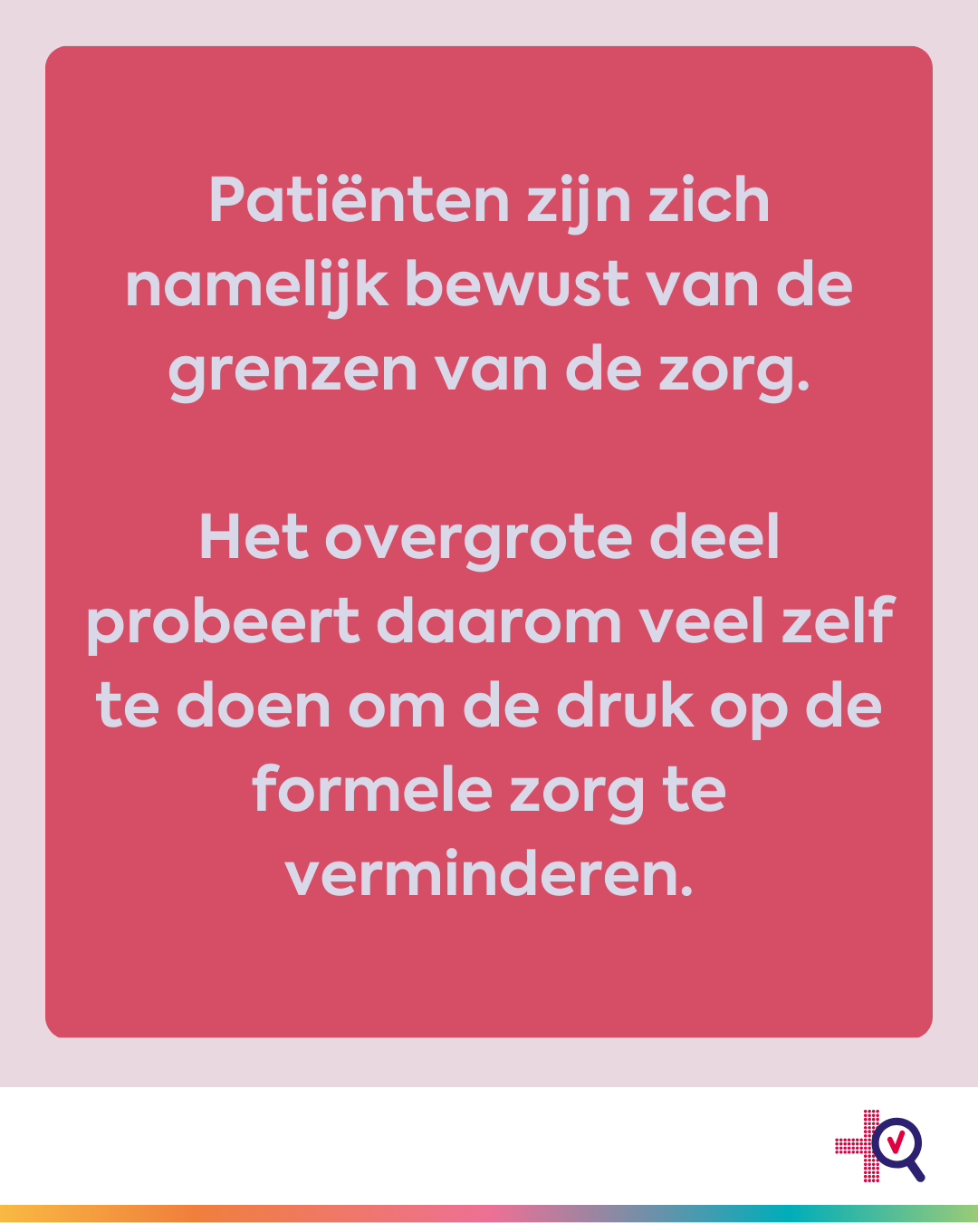 Patiënten zijn dus zelf volop bezig met hun eigen gezondheid en de zorg voor hun naasten waarmee ze de formele zorg ontlasten. Waar volgens het onderzoek verbetering nodig is, is betere ondersteuning vanuit de zorg.
