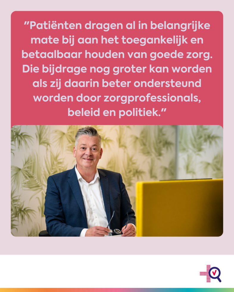 “Patiënten doen er alles aan om de zorg in de toekomst toegankelijk te houden,” aldus Schellekens. “Ze passen hun leefstijl aan, meten thuis hun waarden, zoeken zelf informatie op en zorgen voor hun naasten. Dat doen ze niet omdat ze méér zorg eisen, maar juist omdat ze de zorg zo min mogelijk willen belasten. Het beeld van de patiënt die altijd maar meer zorg wilt, klopt simpelweg niet. Wat patiënten wél vragen, is goede begeleiding, vooral op het gebied van zelfzorg, digitale zorg en leefstijl. Dit moet verbeteren om de zorg ook in de toekomst toegankelijk en betaalbaar te houden.”