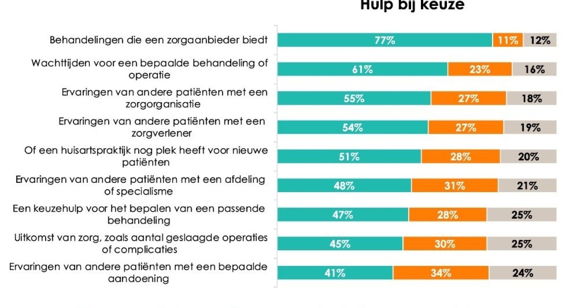 Patiënten willen dat er informatie beschikbaar komt over de verschillen in kwaliteit tussen behandelingen van zorgaanbieders. Uit onderzoek onder ons zorgpanel blijkt dat 95% van de 11.000 deelnemers inzicht wil hebben in de kwaliteit van zorg.